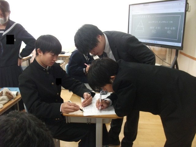 3年生の数学科の授業の様子です。みんなで「相似」の学習問題に取り組んでいます!とても集中しています。