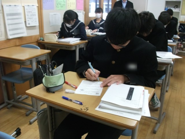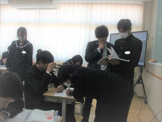 明日から、全学年期末考査です。今日の授業は、このような学習問題に取り組む授業が多く見られます。頑張れ、出中生!