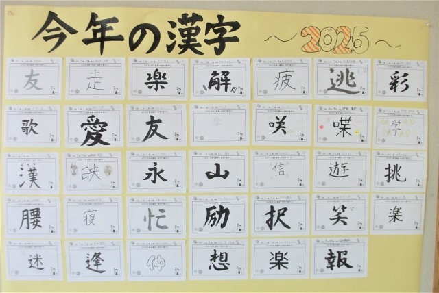 3年生の階段に、「卒業まであと91日」という掲示がありました。もうそんな時期が来たんだなあとしみじみとします。また、3年生議会の企画で、「今年の漢字」も掲示してありました。