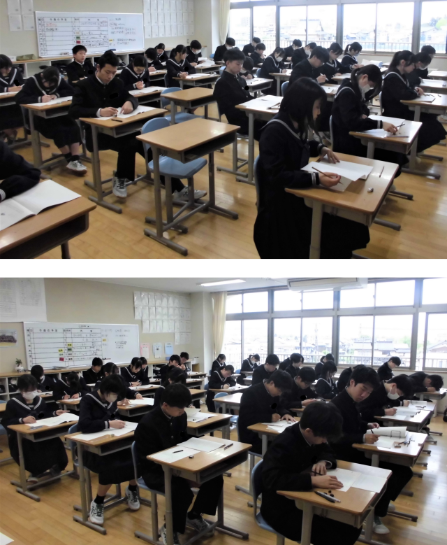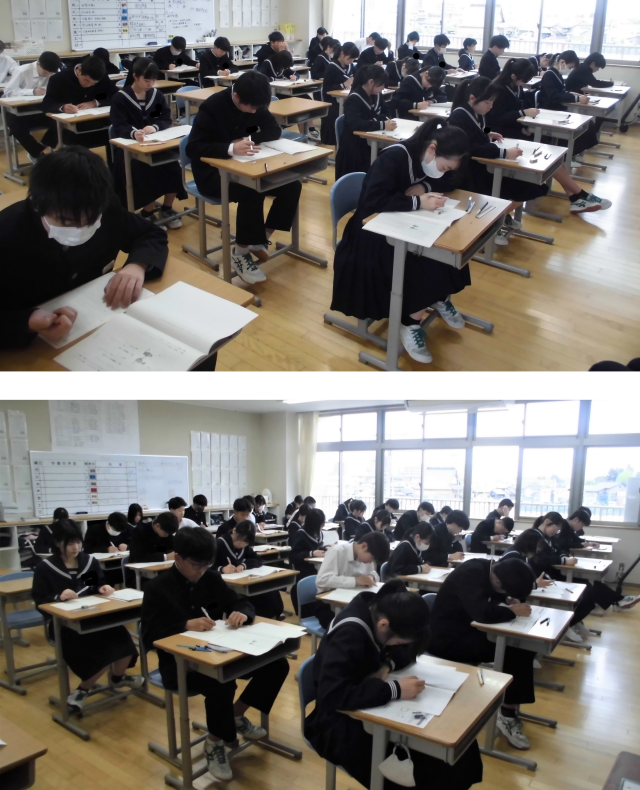 本日、3年生が「令和8年度全国学力・学習状況調査」の国語と数学の調査に臨みました。生徒は、一生懸命に問題に取り組んでいました。