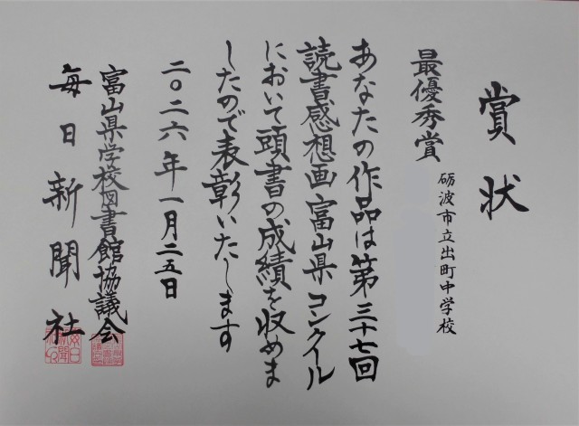 • 受賞報告 【美術部】第37回読書感想画富山県コンクール 最優秀賞受賞! 2/20
