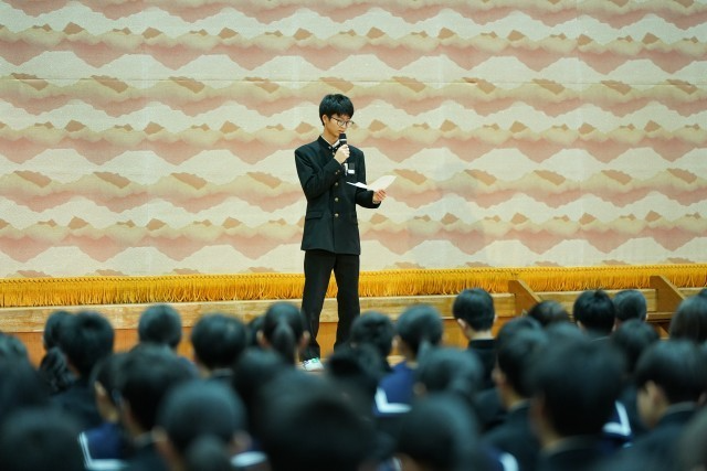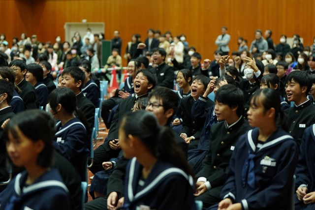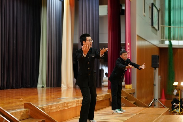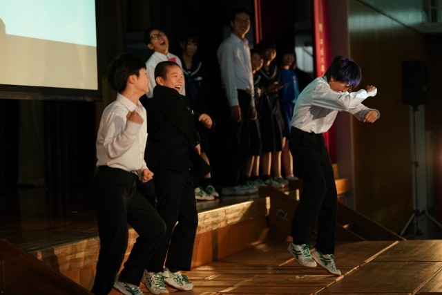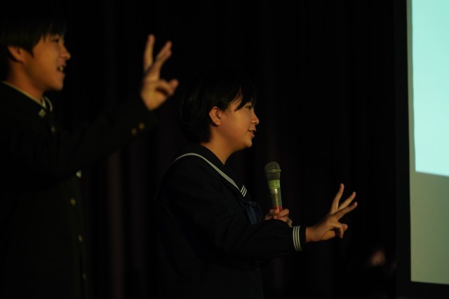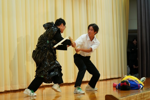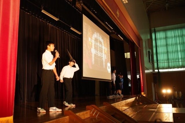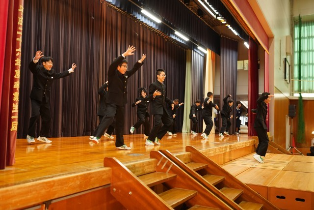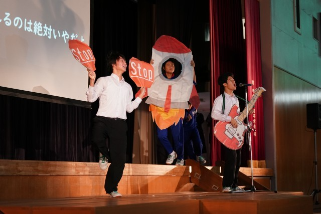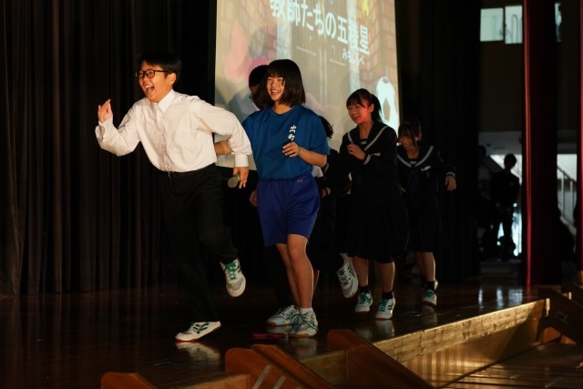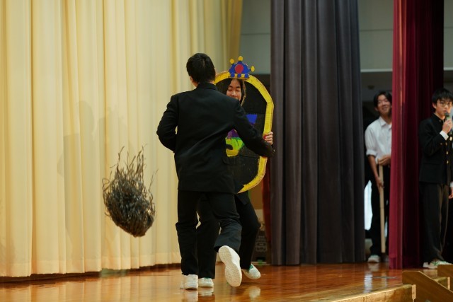 和鍾文化祭2日目、生徒会ステージを行いました。趣向を凝らした各演目をはじめ、昨年度作った生徒会マスコットの「わしょっち」の声優希望者を募ってステージ進行を演じたり、ステージの形状を工夫したり、準備から当日までの活動をスライドショーで振り返りながら歌う全校合唱など、生徒の創意工夫があふれるステージ発表となりました。