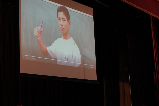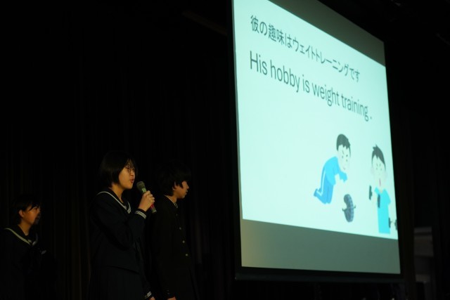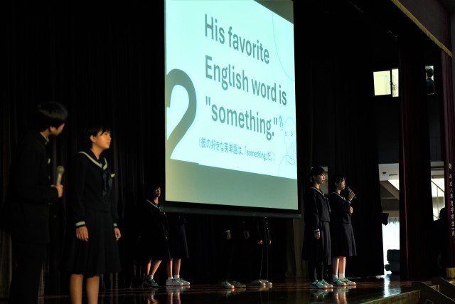 写真1枚目は実行委員代表挨拶、2枚目は意見発表です。意見発表では、「なりたい自分になるために」と題し、県少年の主張大会に参加した作品の発表でした。3枚目からは、ESS Clubのクイズです。