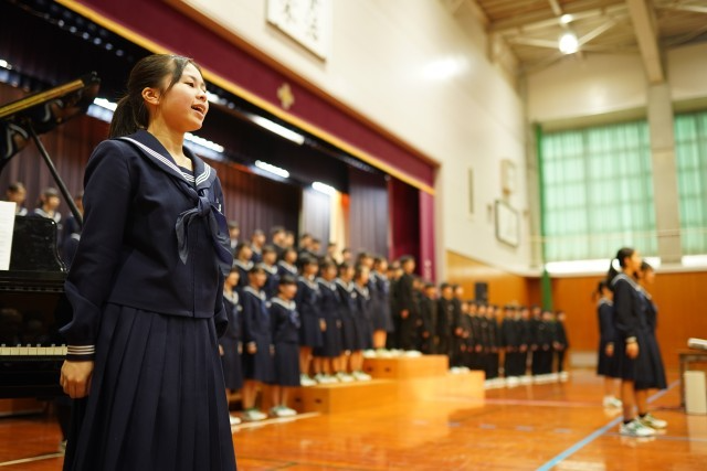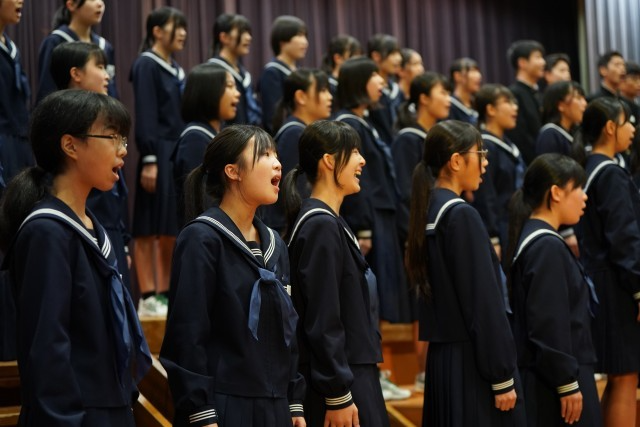 和鐘文化祭のエンディングセレモニーです。生徒が自分たちで選んだ「水平線」という曲を合唱しました。最後に本校の象徴である「和鐘」を3回鳴らして、今年の和鐘文化祭を終了しました。生徒自身の手によってつくった「生徒会ステージ」。昨日の感動的な「合唱コンクール」とともに、生徒は一段と成長しました。保護者、地域の皆様、ありがとうございました。