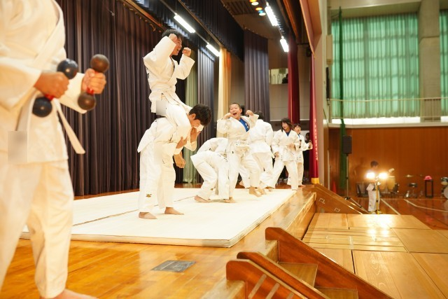「出中のクールボーイズandガールズ」による柔道技&ボディビルポージング&ブルースです。