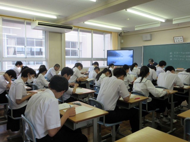 『本当の私』という資料を使って、自分が誇れる生き方について考えました。生徒は、さまざまな友達の考えにふれ、自分の考えを深めていました。