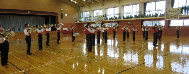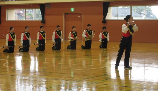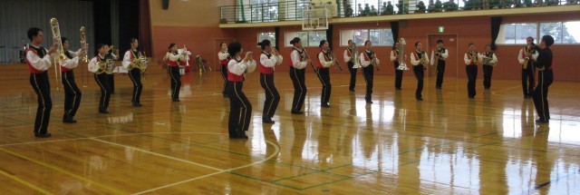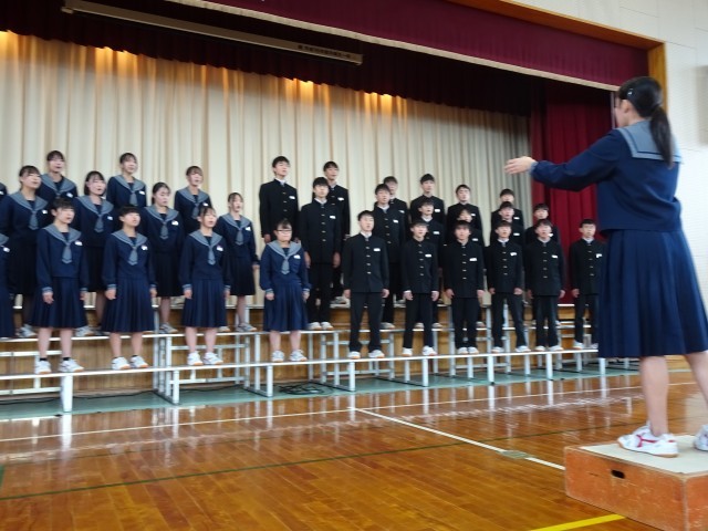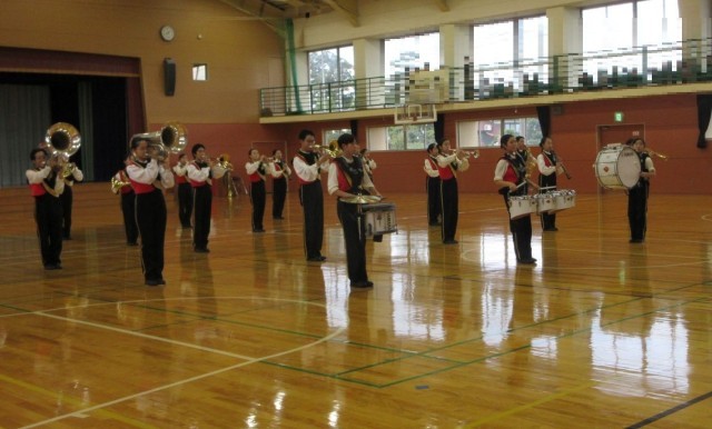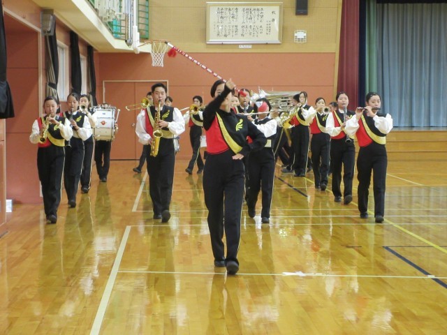 庄南小学校にご招待いただき、11月22日に大阪城ホールで開催される全日本マーチングコンテストで演奏する「大いなる約束の大地~チンギス・ハーン」など、数曲を披露しました。演奏の最後には、吹奏楽部の伴奏に合わせて、全校児童が「ありがとうの花」を元気に歌い、体育館は温かい雰囲気に包まれました。