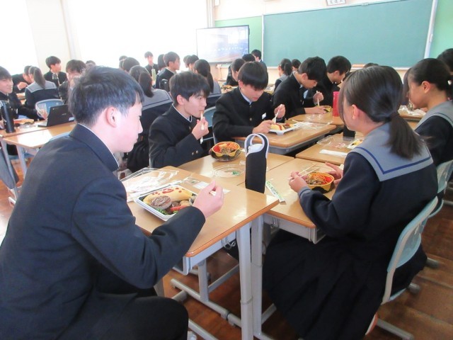おいしそうに弁当をほおばる生徒たちの表情からは、合唱コンクールの緊張から解き放たれた安堵感と、やり切ったという達成感がにじみ出ていました。