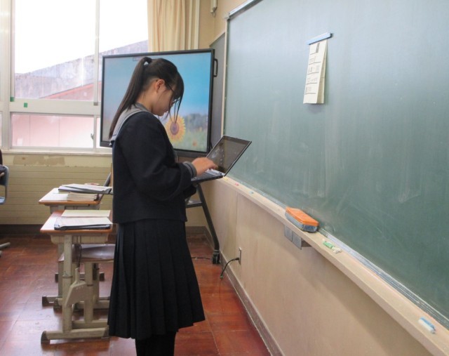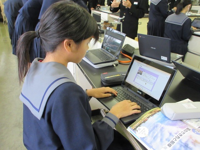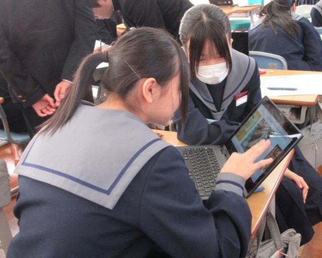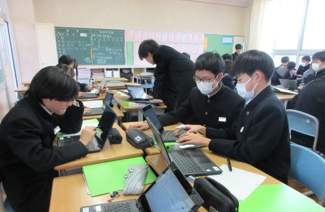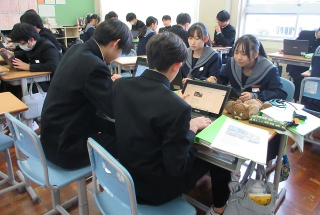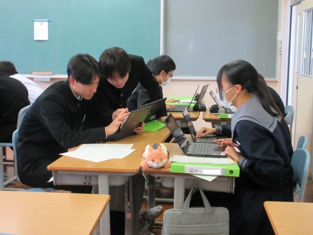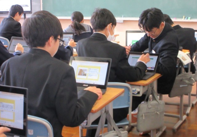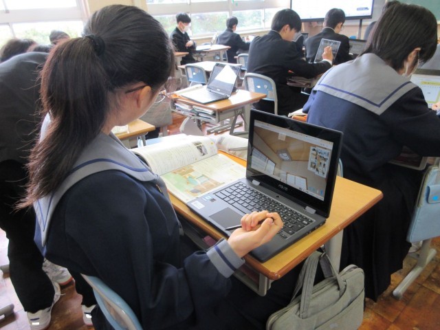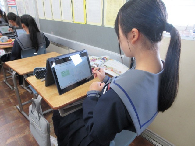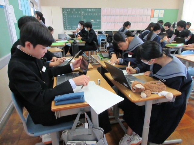 9月の企業見学を通して、それぞれが学んだことや考えたことを伝え合う準備を進めています。タブレット端末を使って発表原稿を作成する生徒、紙に書きながら伝えたい内容を整理する生徒など、自分に合った方法を選択して取り組んでいました。