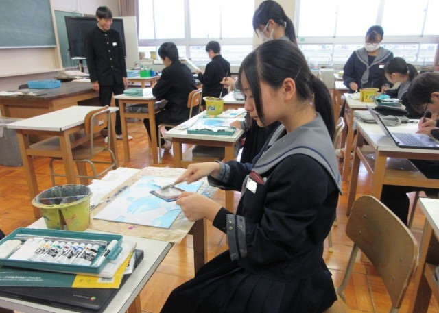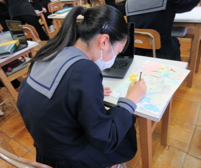 スパッタリングやマーブリングなどのモダンテクニックの効果を生かして表現活動に取り組んでいます。
