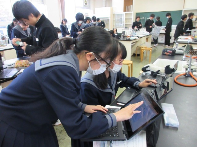 班で話し合い、物体の高さや速さ等の条件を変えながら実験を行っていました。実験の結果を記録したワークシートを真剣な表情で見つめ、規則性を見付けようと頭をフル回転させている様子も見られました。