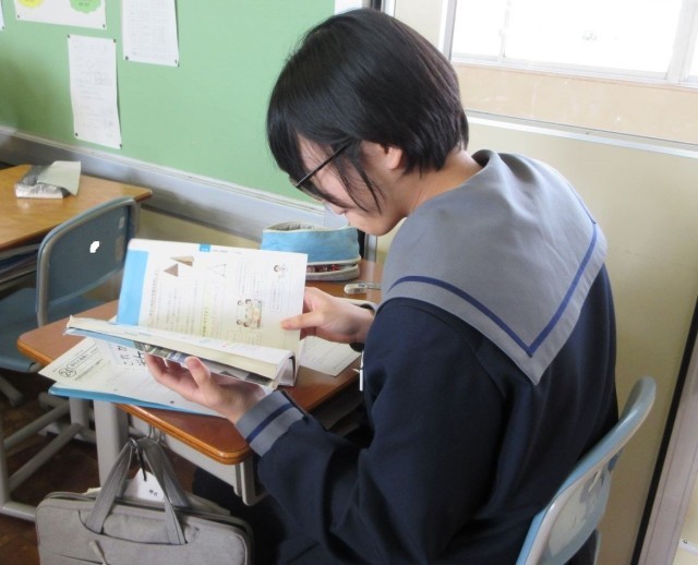 教科書を繰り返し読み、時間をかけて自分の考えをワークシートにまとめる生徒。友達に自分の考えを伝えながら思考を整理する生徒。さらに、話し合いで解決できなかったことを教師に質問する生徒。それぞれが課題解決に向けて、粘り強く取り組んでいます。