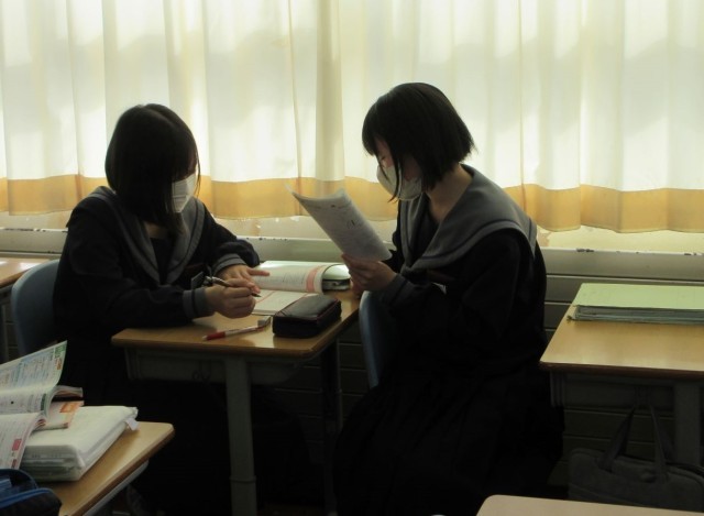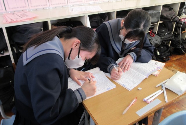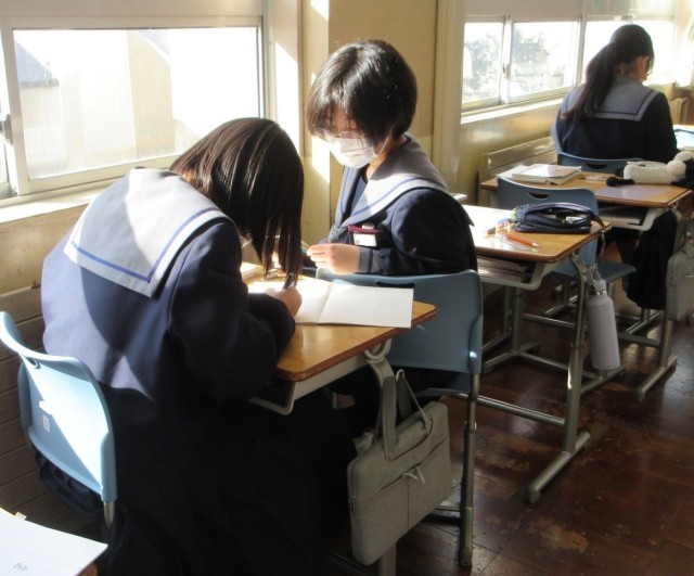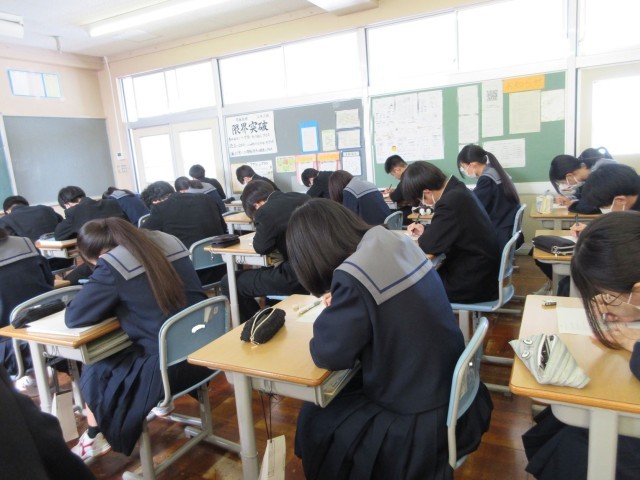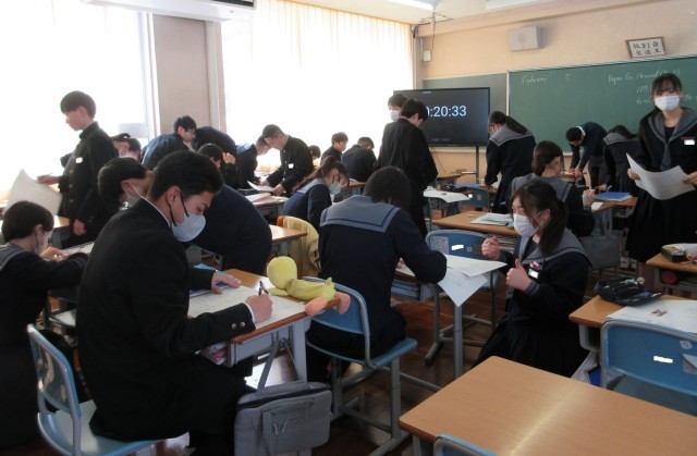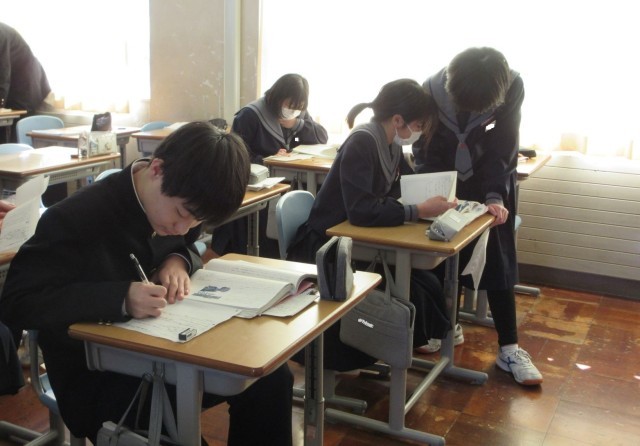 私立高校一般入試の日が近づく中、生徒たちは、真剣な表情で過去の入試問題に取り組んでいました。