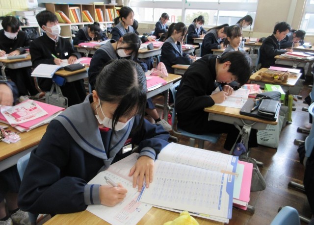 音楽の授業では、担当教員から「どんな歌を歌いたいのか」「残りわずかの授業にどのように取り組むのか」という問いが投げかけられました。生徒たちが、この問いにどのような思いを込めて答えを導き出すのか、期待しています。