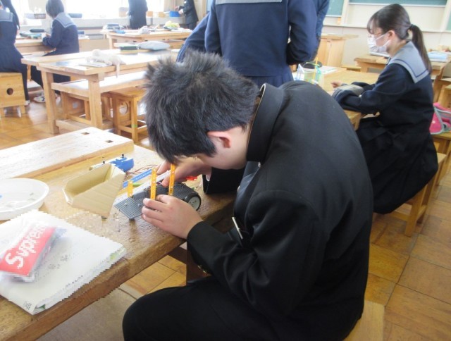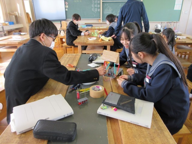 モーターの製作を通して、電流と磁界について理解を深めました。思うように回転せず、苦戦しながらも、グループで協力して取り組んでいました。