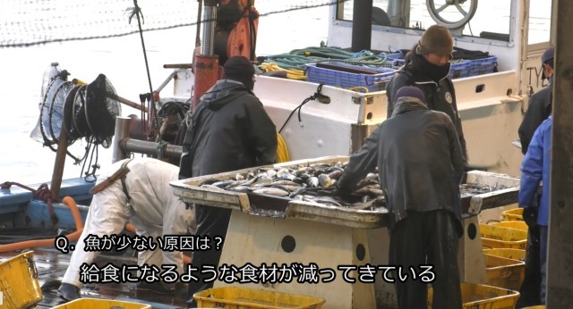 この作品は、「給食に魚が出ることが少ない」という疑問から魚のことについていろいろ調べて作った作品です。