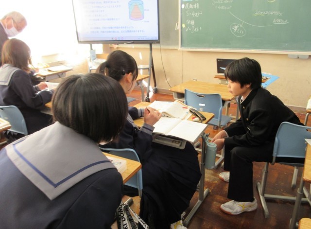 友達から教わった内容を、今度は別の友達へ丁寧に説明する生徒。その説明を聞いて自分の誤りに気付き、納得して修正する生徒。どちらの姿からも学び合いによって理解が深まっていく様子が感じられました。