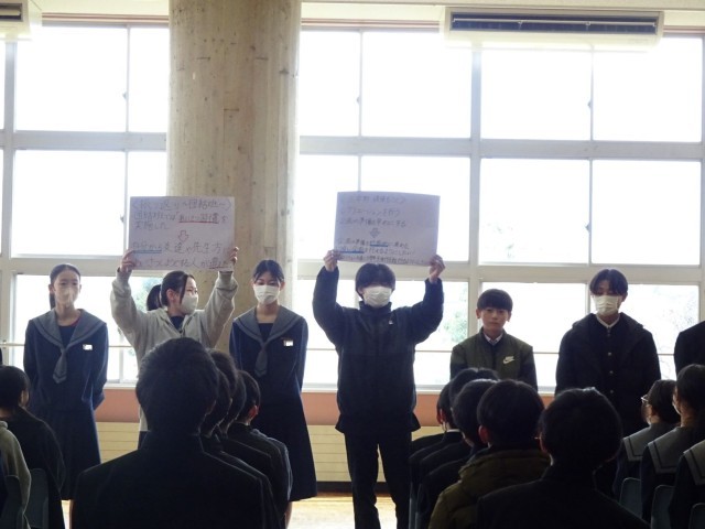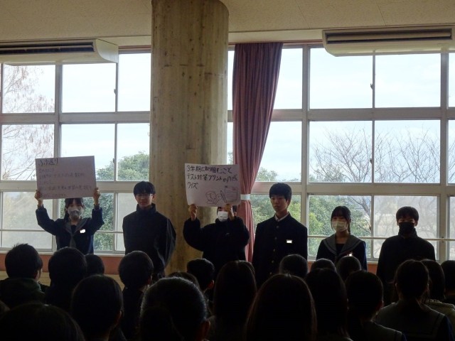 学年議会が中心となって、2学期の振り返りを行いました。さらに、3学期の取り組みを全員で共有し、学年全体で力を合わせて頑張ろうという気持ちを高めました。
