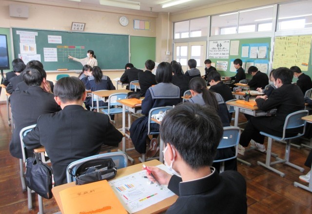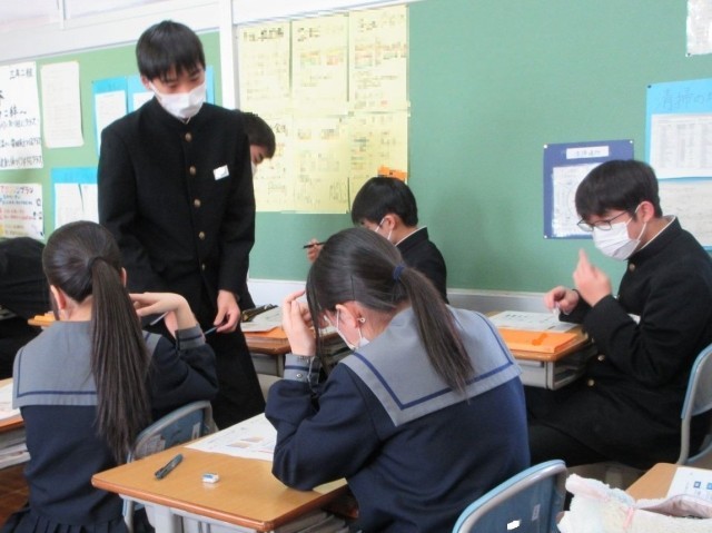 学校給食センターから栄養教諭の先生をお招きし、受験期をのりきるための食事について学習しました。脳の働きを高める栄養、免疫力を強める栄養、さらにはストレスをやわらげるために必要な栄養などを分かりやすく教えていただきました。学んだことを、ぜひ日々の生活の中で実践してほしいと思います。