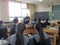 マット運動に取り組んでいます。友達同士で補助したりアドバイスをし合ったりする姿が見られました。また、タブレット端末を活用して自分の動きを確認し、よりよい技を目指して改善しようとする姿も見られました。