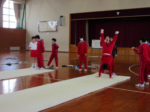 2年保健体育「倒立前転、連続技の練習をしよう」