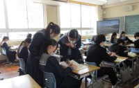 火傷をしないよう安全面に気を配り、布の方向を意識しながら丁寧にアイロンがけをしていました。最後は、教科書でたたみ方を確認し、整った形に仕上げていました。次はぜひ家庭で実践を!