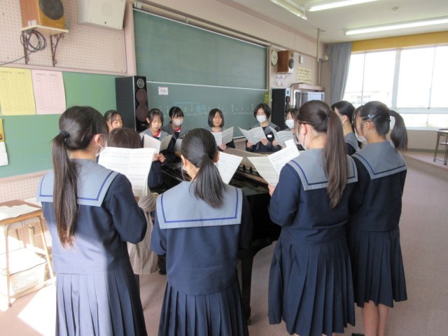 「どこを練習する?」「F」などど話合い、曲のどの部分をマスターするのかを明確にして練習に取り組んでいました。