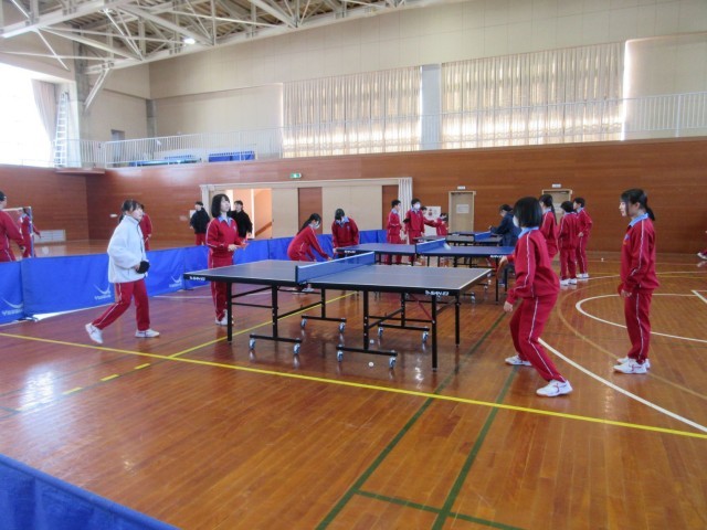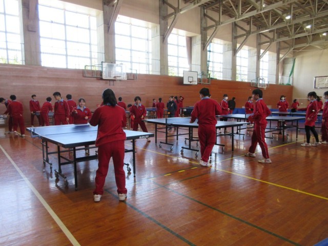 卓球かバドミントンを選んで活動しています。生徒の表情からは、運動そのものの楽しさや仲間と取り組む喜びを実感している様子がうかがえます。