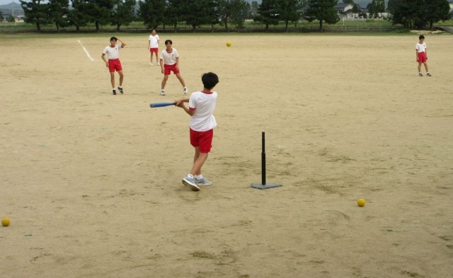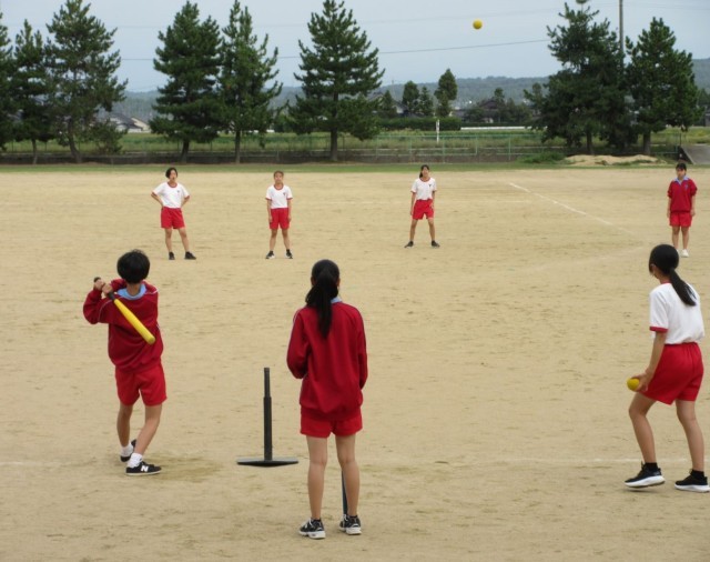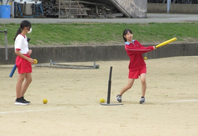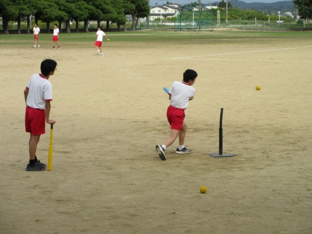 バットの振り方をアドバイスしたり、「がんばれ」と励ましの声をかけたりと、互いに声をかけ合いながら意欲的に活動していました。