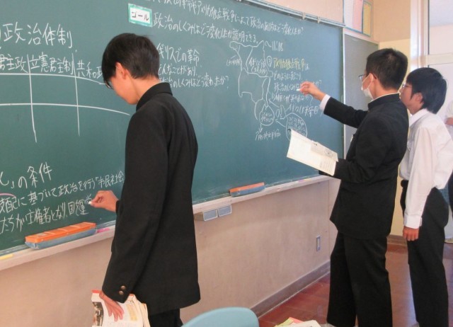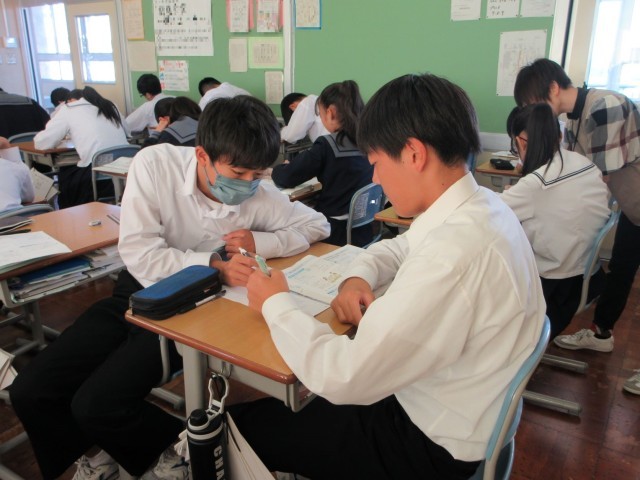 学級の全員が学習内容を理解できるよう、互いに教え合いながら学習を進めていました。