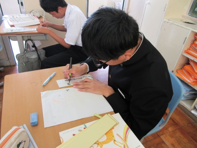 書体をタブレット端末で調べる姿や、一画一画丁寧に筆を運ぶ姿が見られました。