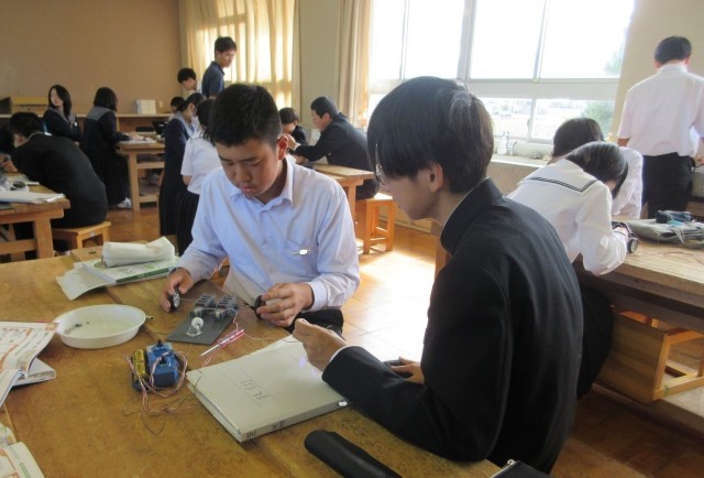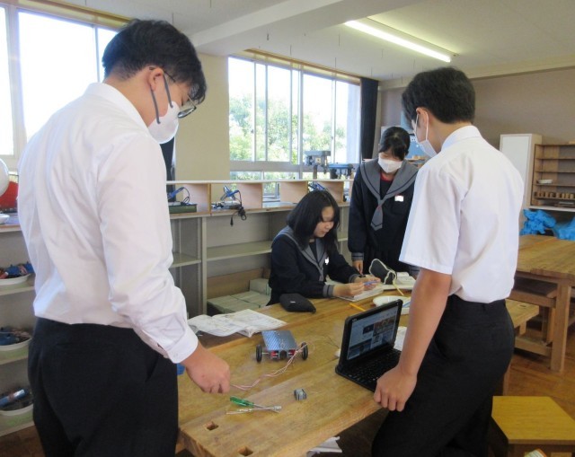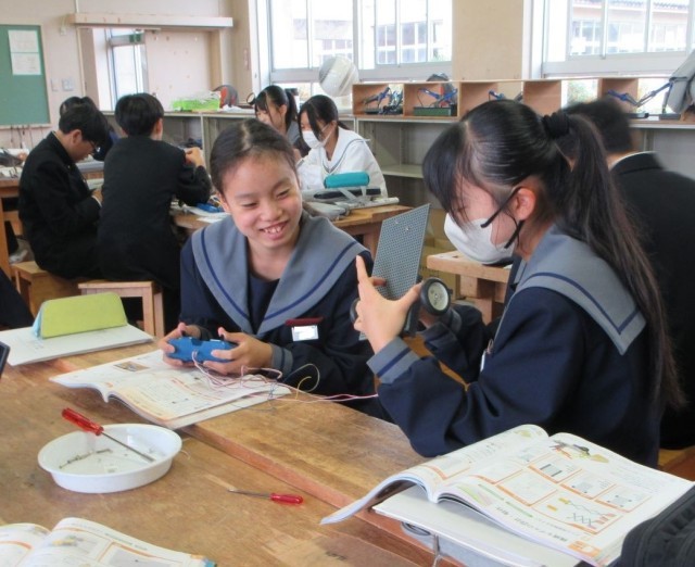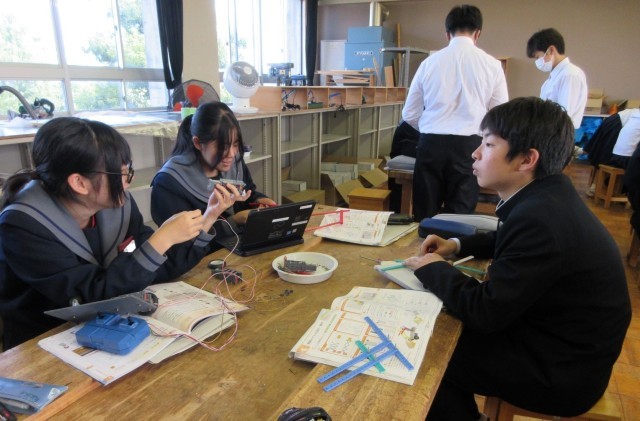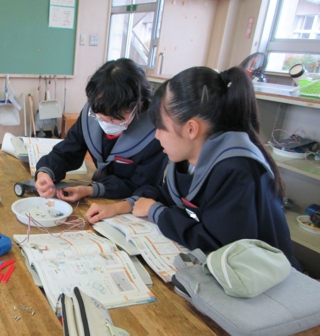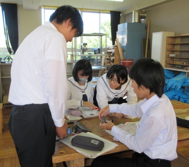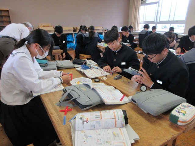 教科書を見たり、他の班に聞きにいったり、班の仲間と話し合ったりしながら、熱心に製作に取り組んでいました。