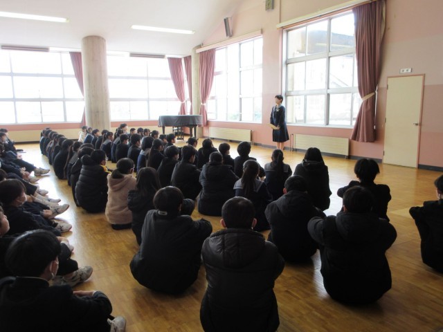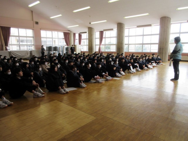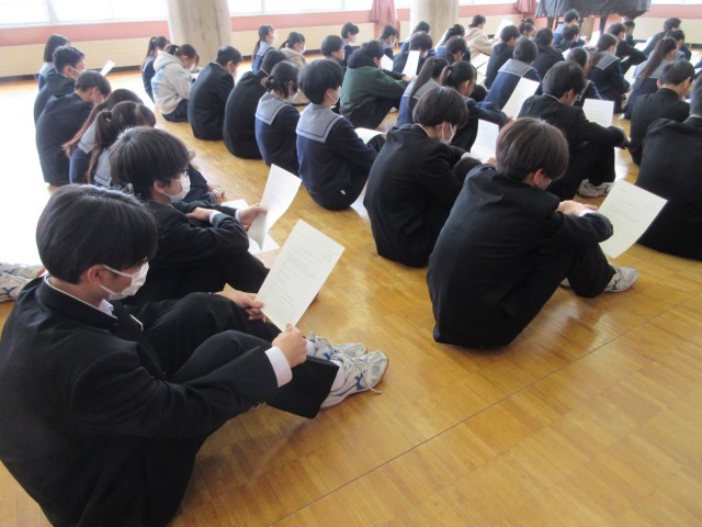 次年度の修学旅行に向けて、学年集会を行いました。実行委員長の話や学年主任からの修学旅行のねらいについての話を真剣な表情で聞いていました。