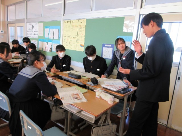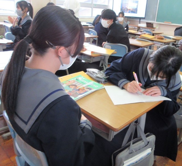 クリスマスをテーマにマッピングでイメージを広げ、その内容をスピーチしました。さらに、クラスのみんなと質問し合ったり、答えたりと、楽しい雰囲気の中で英語によるやりとりが続いていました。