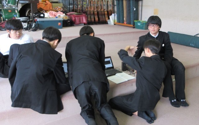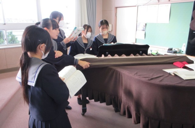 『友よ』を正しい音程で歌えるようにするため、パート練習で繰り返し階名唱に取り組む姿が見られました。