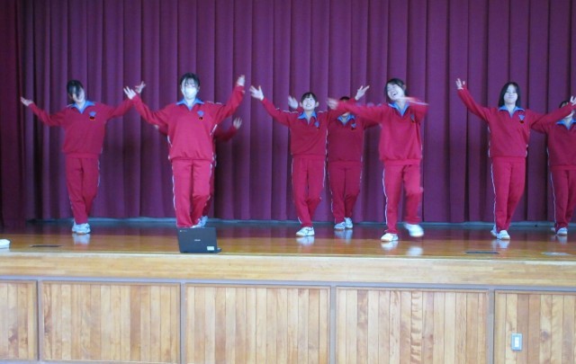 グループごとに課題のステップを取り入れたダンスを考え、発表しました。笑顔で楽しそうに踊る姿や、大きな動き、隊形移動のスムーズさ、統一感等の視点で他のグループのよさをみつけ、大きな拍手を送る姿が見られました。。