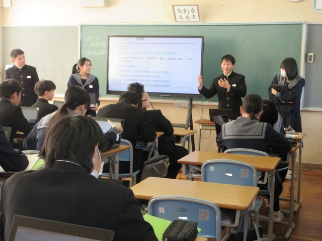 税理士の先生を講師にお迎えし、租税教室を実施しました。税金のしくみについて分かりやすくご説明いただき、生徒たちは理解を深めることができました。感想には、「学んだことを今後に生かしていきたい」「まずは税についてきちんと知ることが大切だと感じた」などの声が寄せられ、税の役割や重要性を考えるきっかけとなりました。