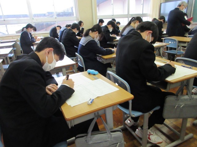 私立高校一般入試の日が近づく中、生徒たちは、真剣な表情で過去の入試問題に取り組んでいました。