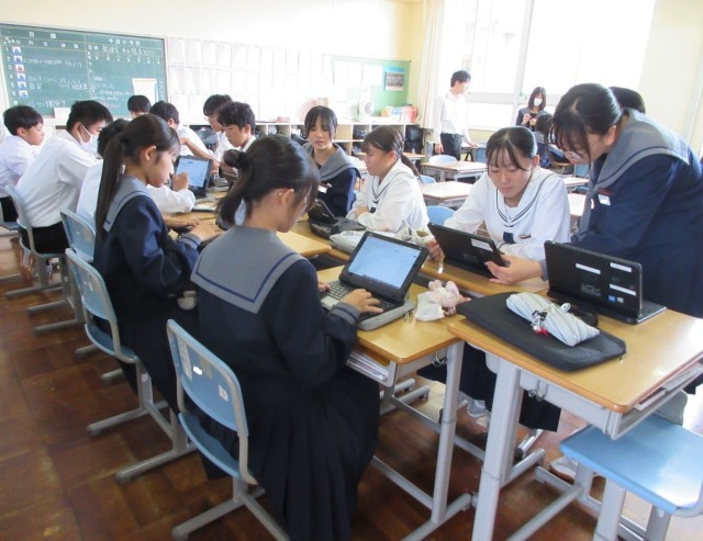 選挙管理委員会の入念な準備のもと、リモート形式で各教室で生徒会選挙立会演説会が行われました。みんな真剣な様子で話を聞き、それぞれの思いを込めて投票しています。