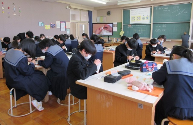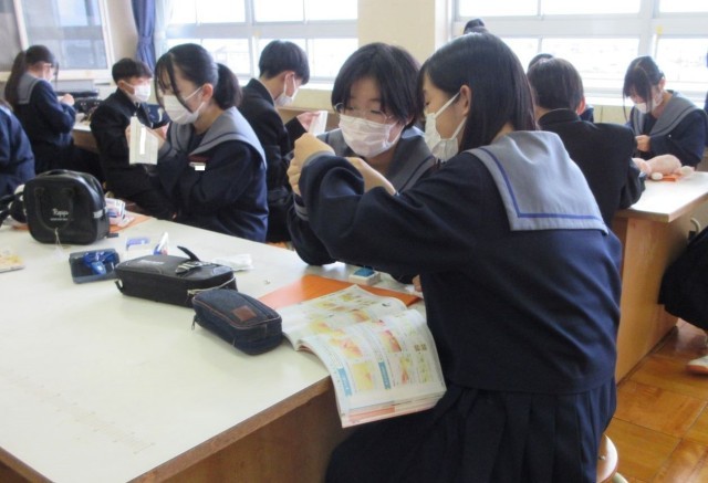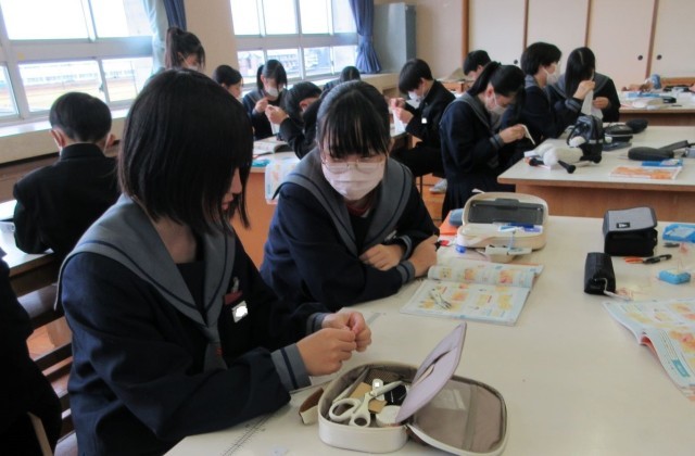 1年家庭科「スナップ付けに挑戦」