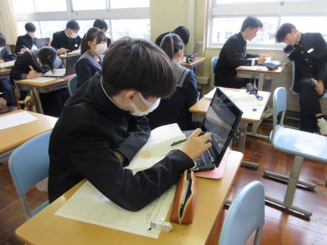 『本当の私』という資料を使って、自分が誇れる生き方について考えました。生徒は、さまざまな友達の考えにふれ、自分の考えを深めていました。