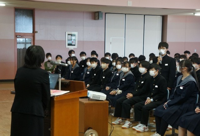 今日は『人権デー」です。朝の活動では、全国中学生人権作文コンテスト富山県大会で最優秀賞を受賞した本校生徒の作品を通して、人権について考える時間をもちました。