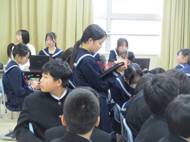 後半は、執行部から「来年度の委員会の統合・再編成」について提案がありました。各学級やグループから多くの意見や案が出され、活発な意見交換が行われました。