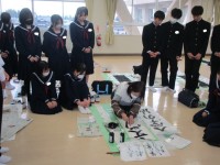 2年生は進路学習の一環として、各グループ3人ほどで「高校調べ」を行っています。割り当てられた高校について、進路のしおりや資料を参考にしながら、タブレットで分かりやすくまとめています。友達と相談し合い、真剣に話し合う姿から、自分の進路についてしっかり考えようとする気持ちが伝わってきました。