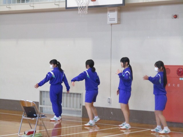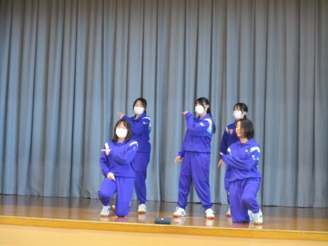 3年生の保健体育科では、ダンスの学習に取り組んでいます。今日は中間発表会を行い、ステージ上でこれまで練習してきたダンスを披露しました。発表後は、先生からのアドバイスを受け、より完成度を高めていきます。