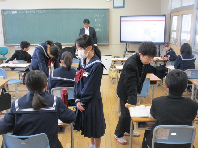 1月27日(火) 1年生 数学科【おうぎ形の面積を求めよう】