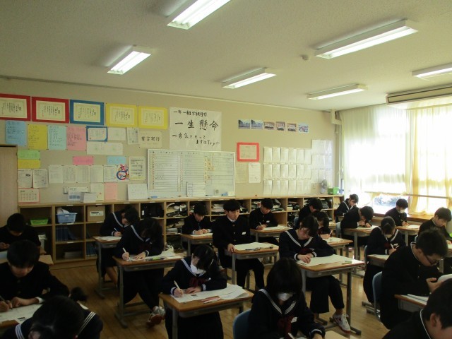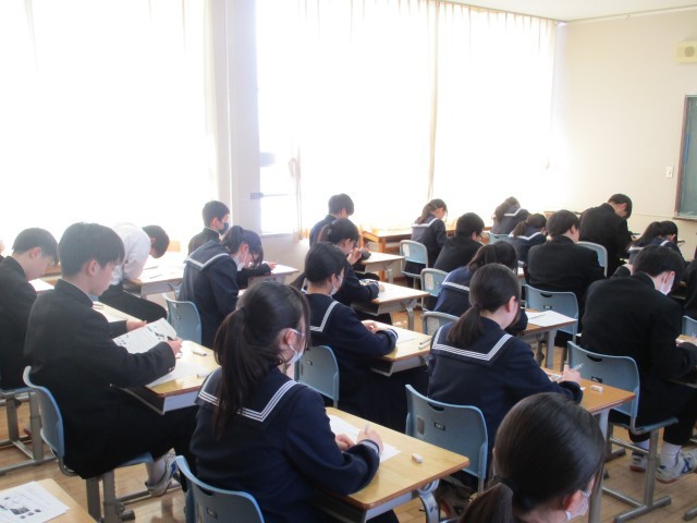 1・2年生の技術・家庭科の期末考査が行われました。これまでの学習の成果を発揮しようと、一人一人が真剣な表情で問題に向き合っていました。