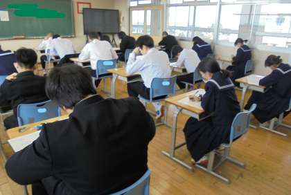 期末テスト2日目です。数学の問題に真剣に取り組んでいます。