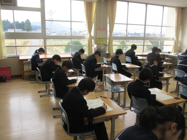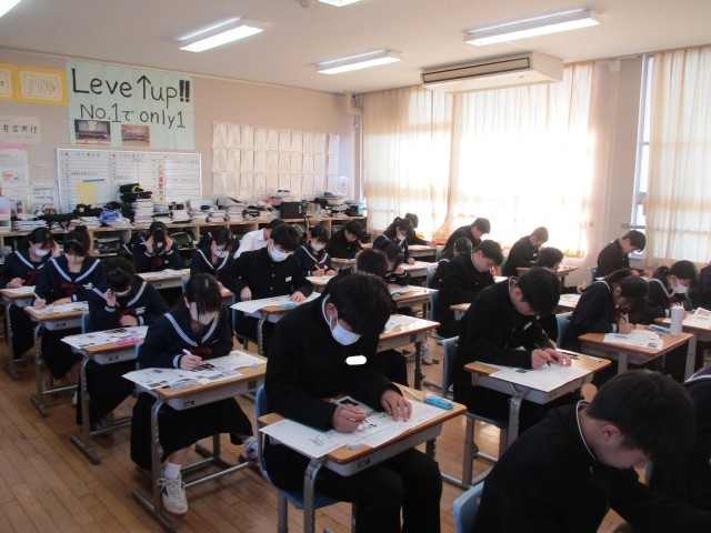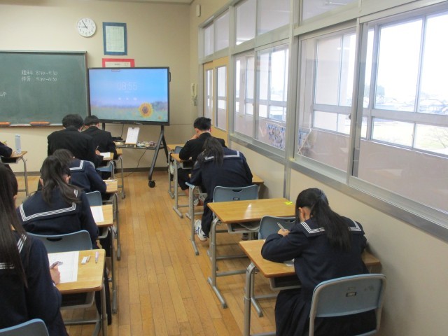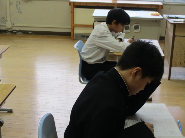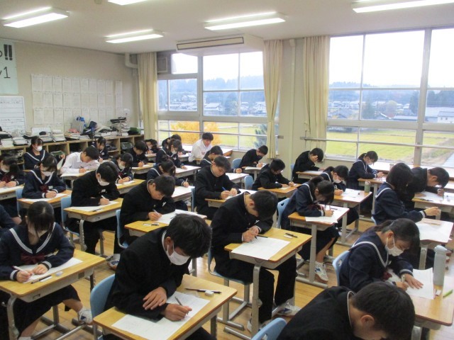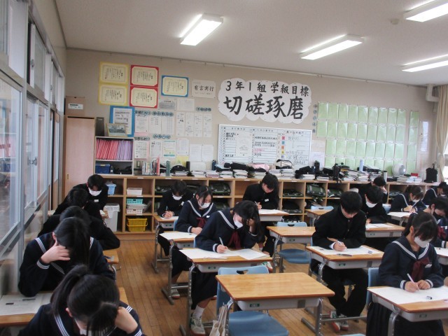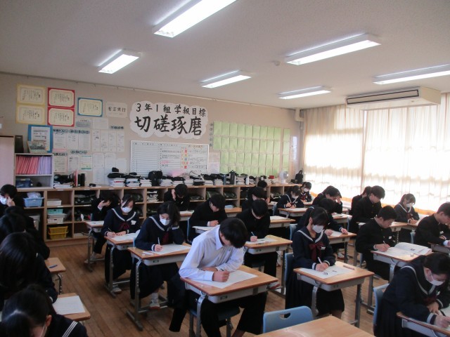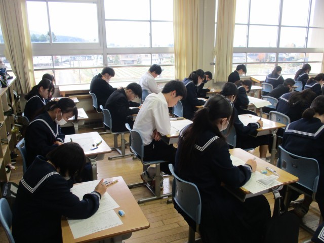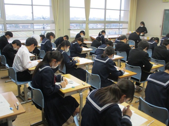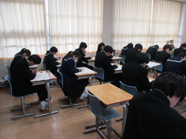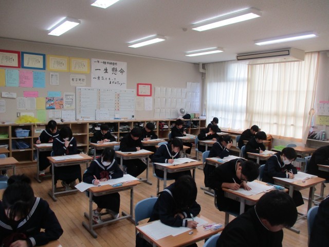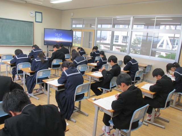 本日は、期末考査の最終日です。生徒たちは最後まで集中して取り組んでいました。積み重ねてきた学習に向き合う、生徒の真剣な姿が見られました。