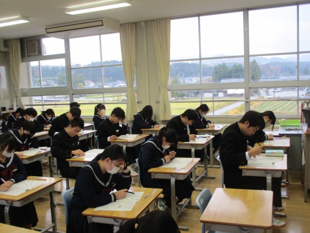 今週は、技術・家庭科と美術科の期末考査が行われ、今日からは来週26日まで、複数の教科での期末考査が始まりました。どの生徒も、これまでの学習の成果を発揮しようと、集中して一生懸命取り組んでいました。